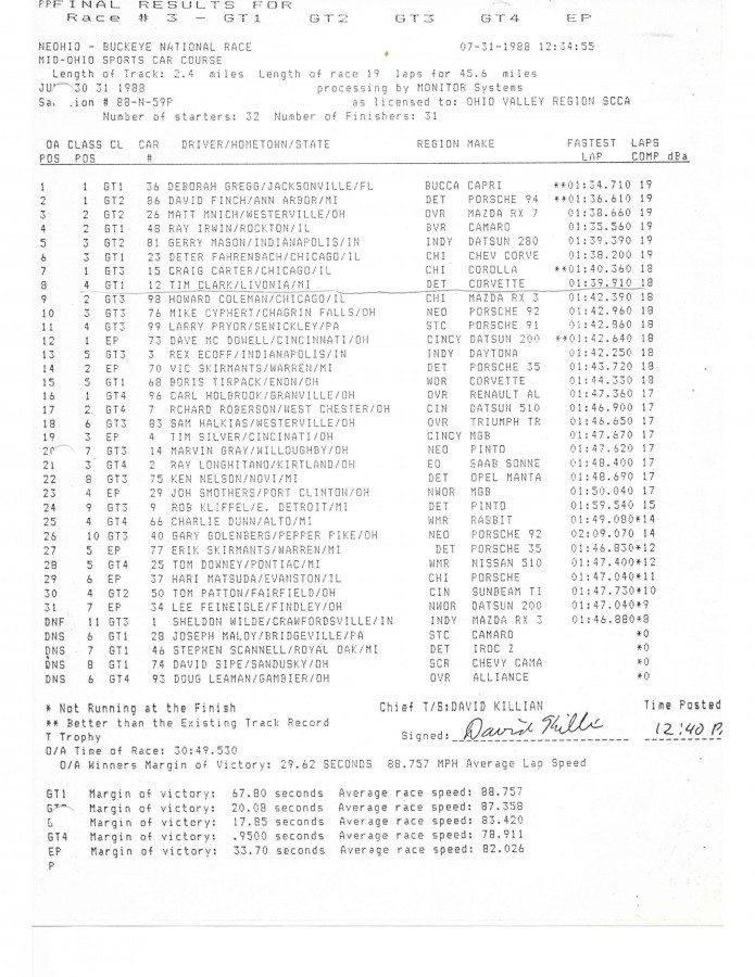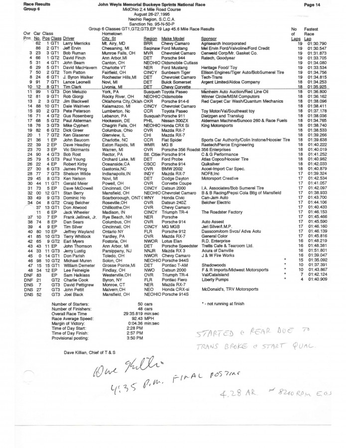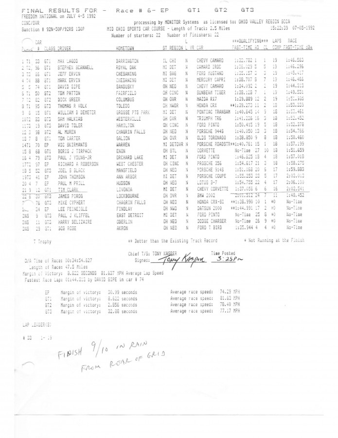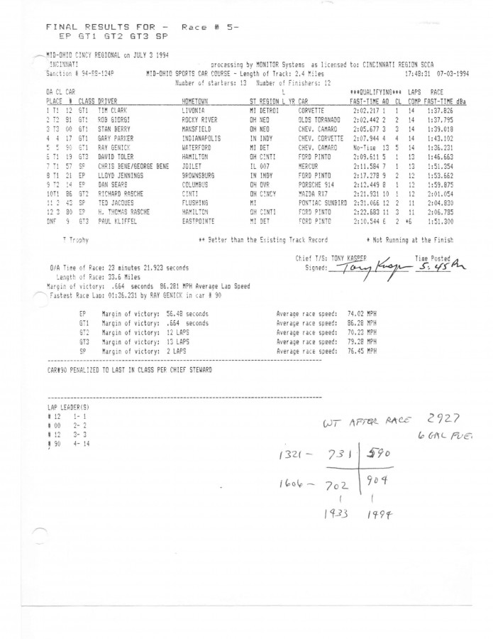 Tim Clark Corvette GT1 timing sheets